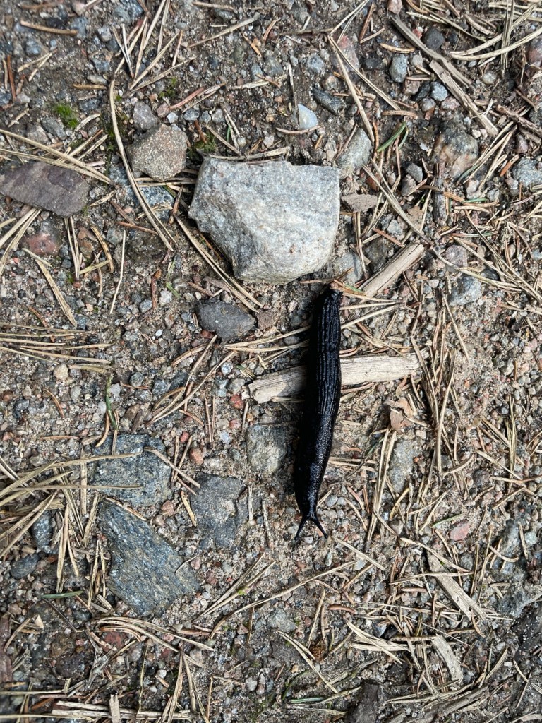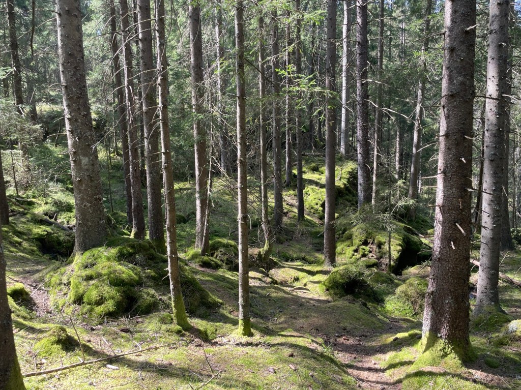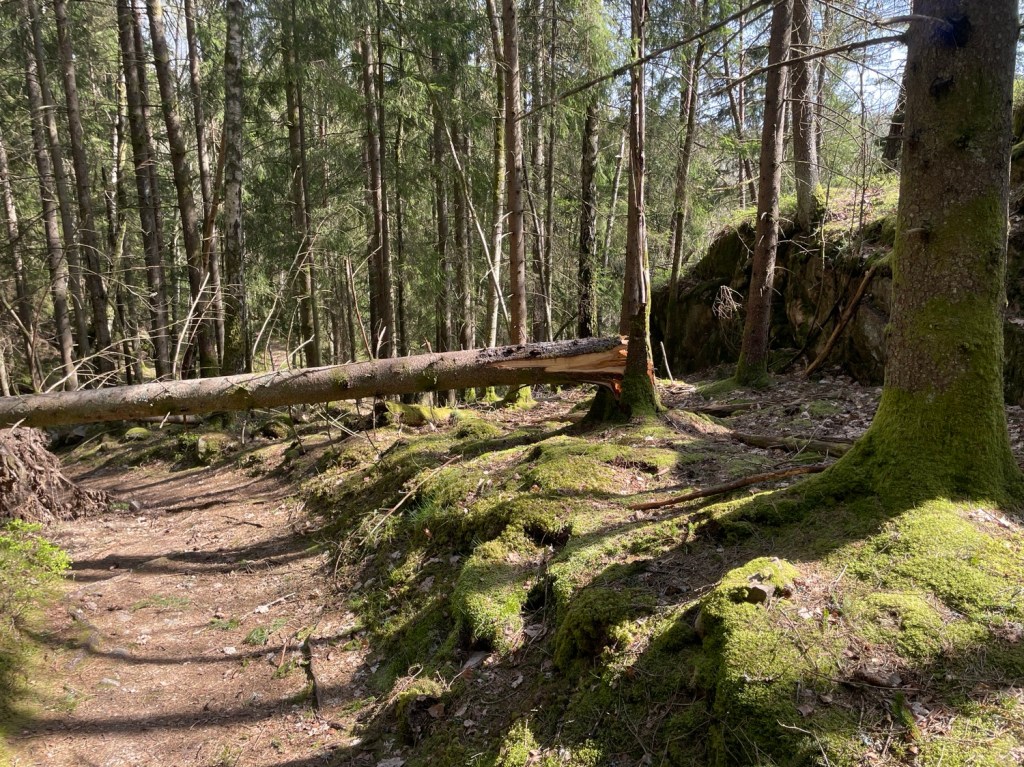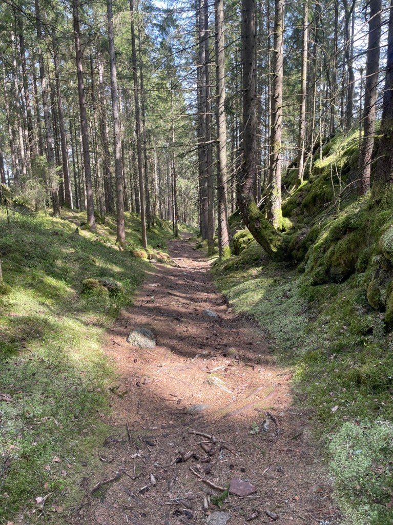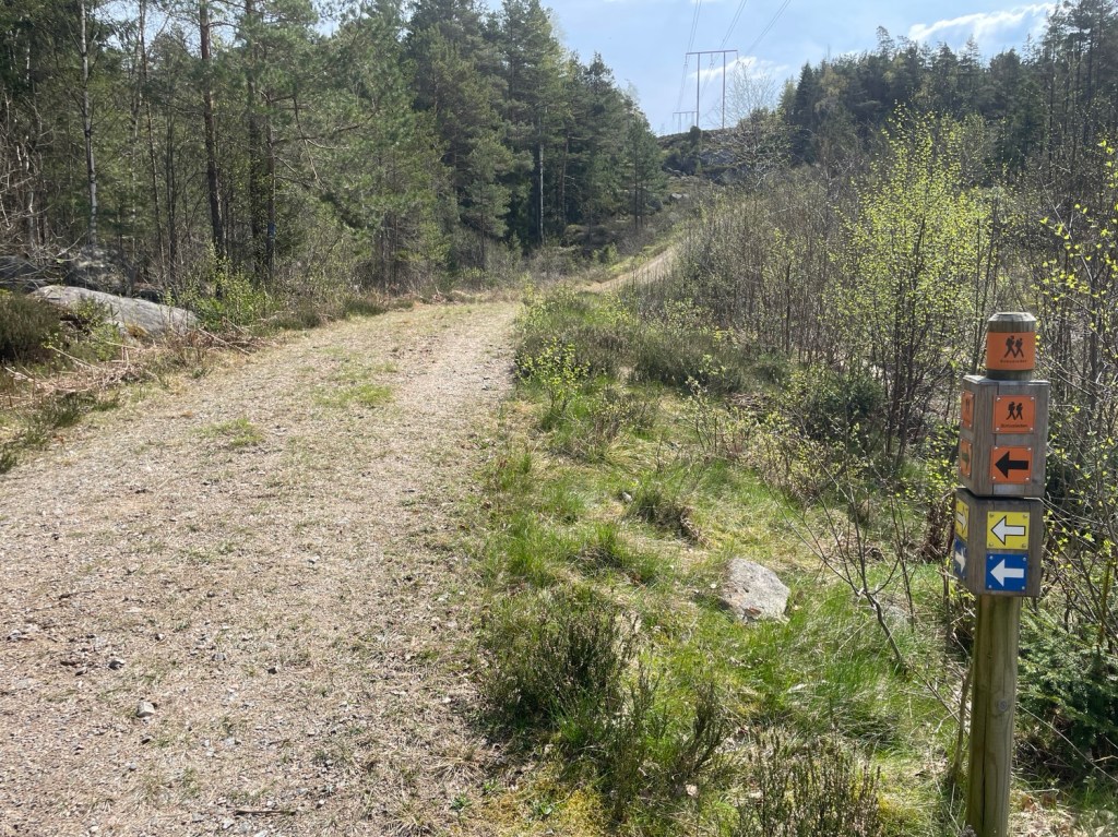 Började vandra på en grusväg sen vek leden av in i skogen. Leden var tydligt märkt.