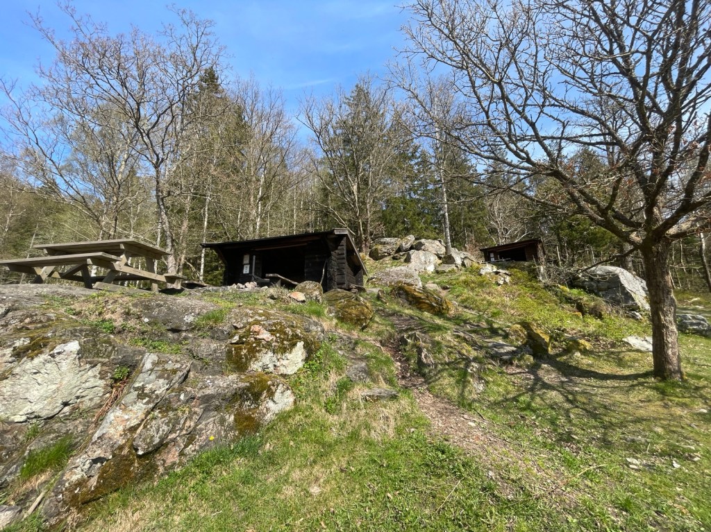 Kom åter till Bottenstugan som var under renovering. Vid området fanns det flera vindskydd och dass.
