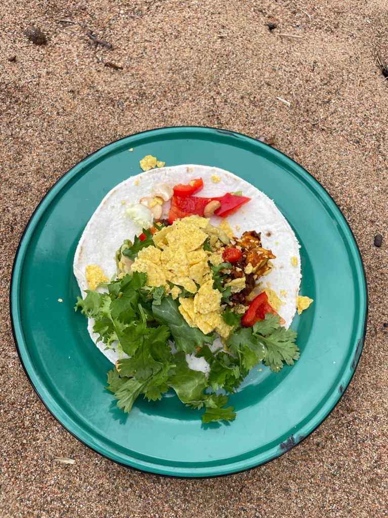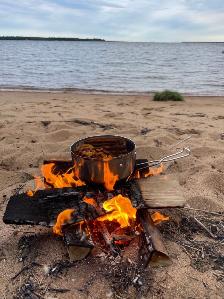 Tände en brasa och värmde på min veganska texmex som jag hade förberett hemma dagen innan. Använde mina nya rostfria kokkärl som jag tänker använda för utematlagning på öppen eld.
