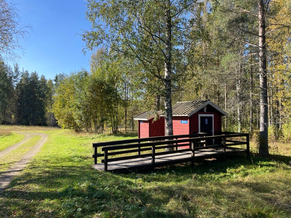 Gick tillbaka på andra sidan och såg kolhuset som tillhörde hyttan.