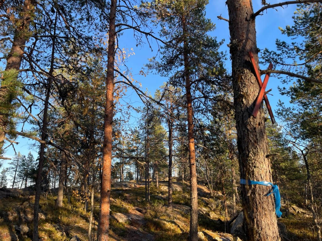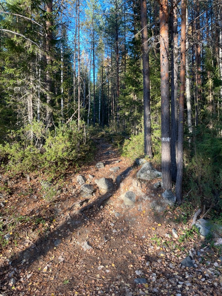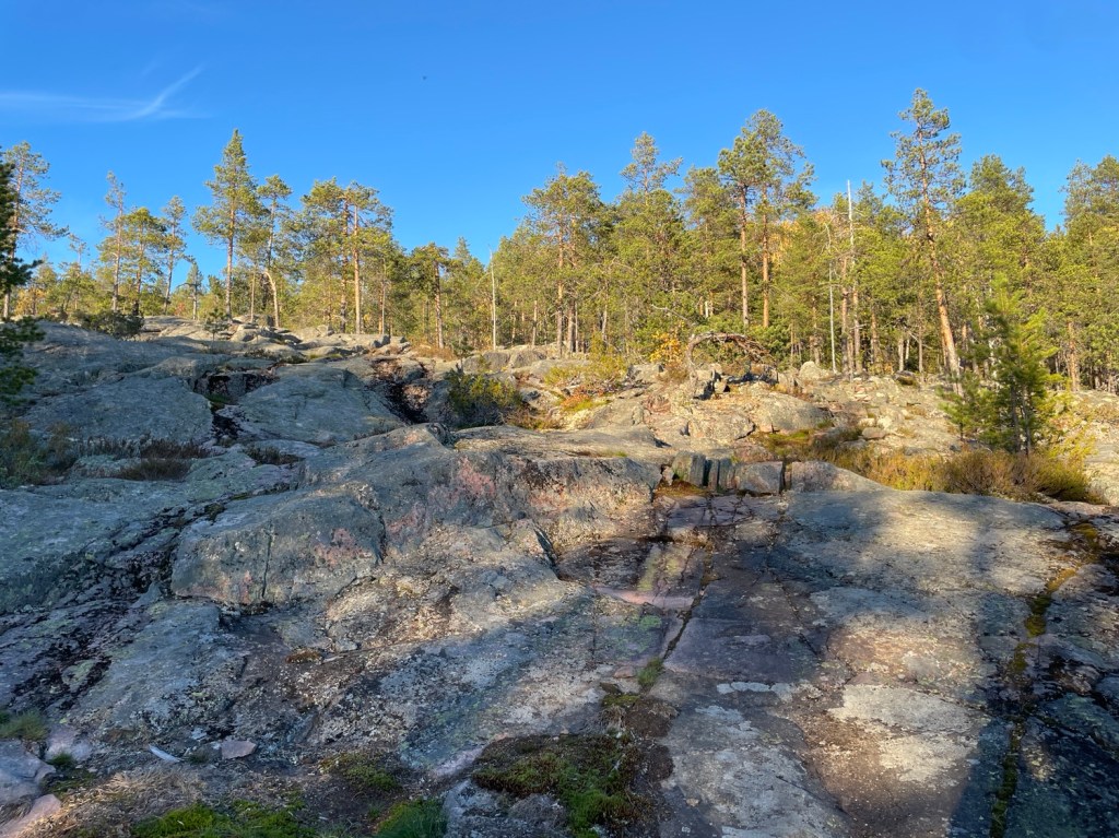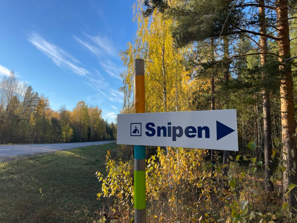 Efter ett besök till Långforsen strax norr om Niemisel körde jag till närliggande Snipen. Passerade flera parkerade bilar innan parkeringen till leden upp till Snipen. Tänkte att det var bergsklättrare eftersom Snipen är ett populärt berg för bergsklättring. Jag har en tendens att uppskatta berg som bergsklättrare också gillar. Svängde in vid skylten Snipen med den färgglada stolpen till parkeringen.