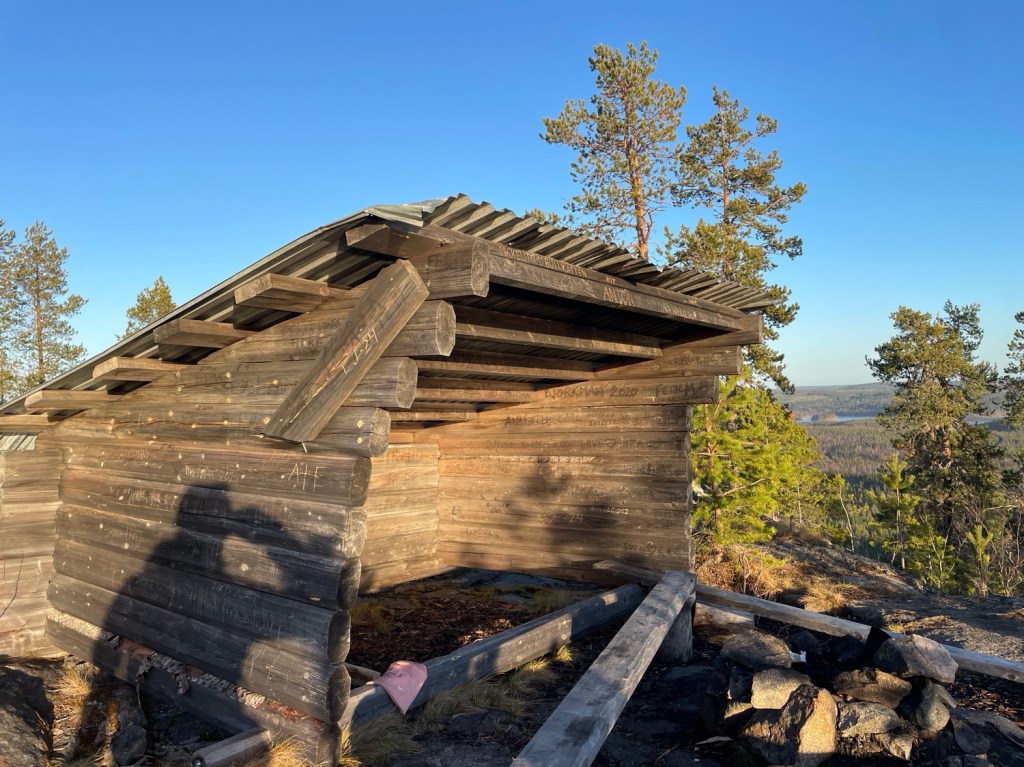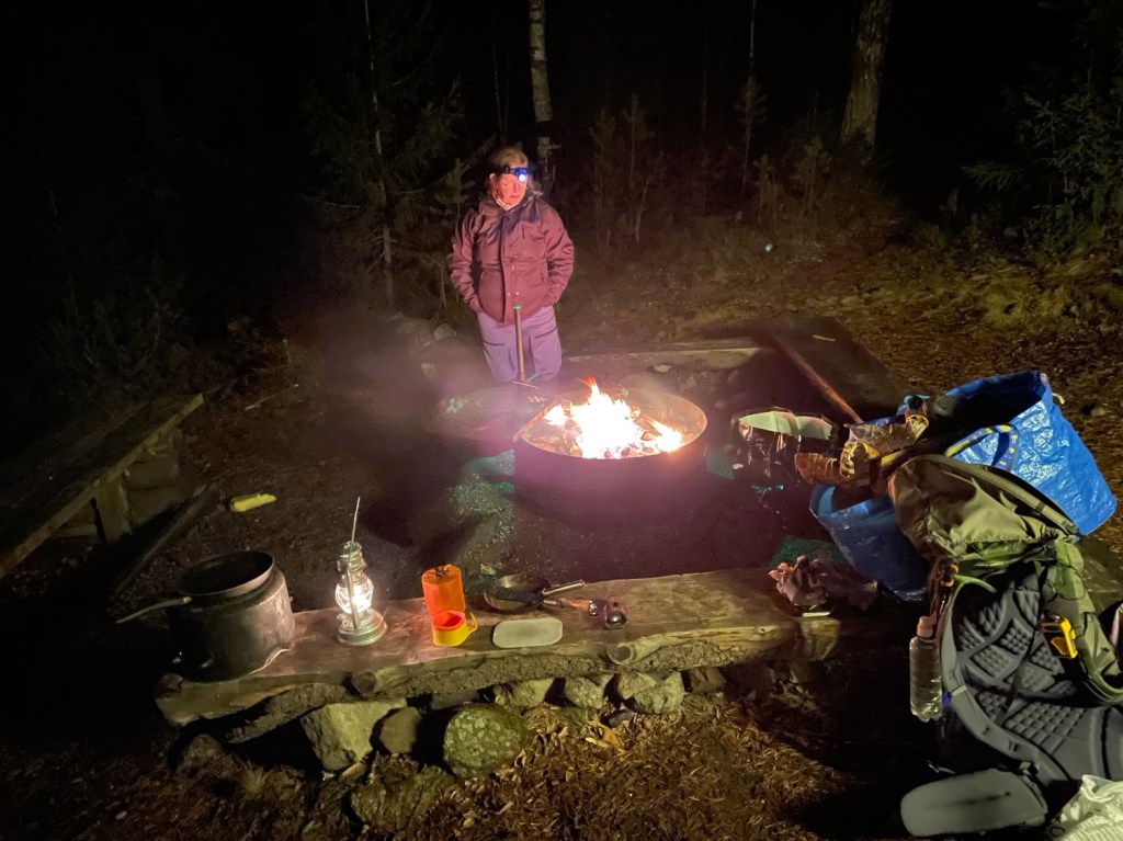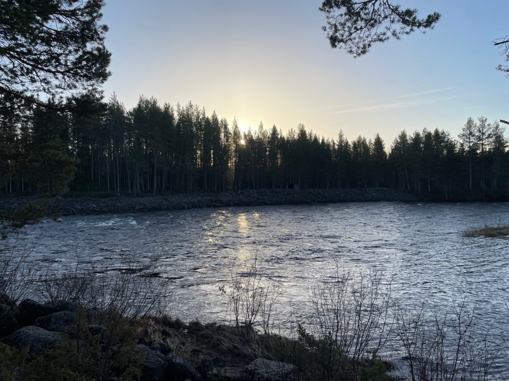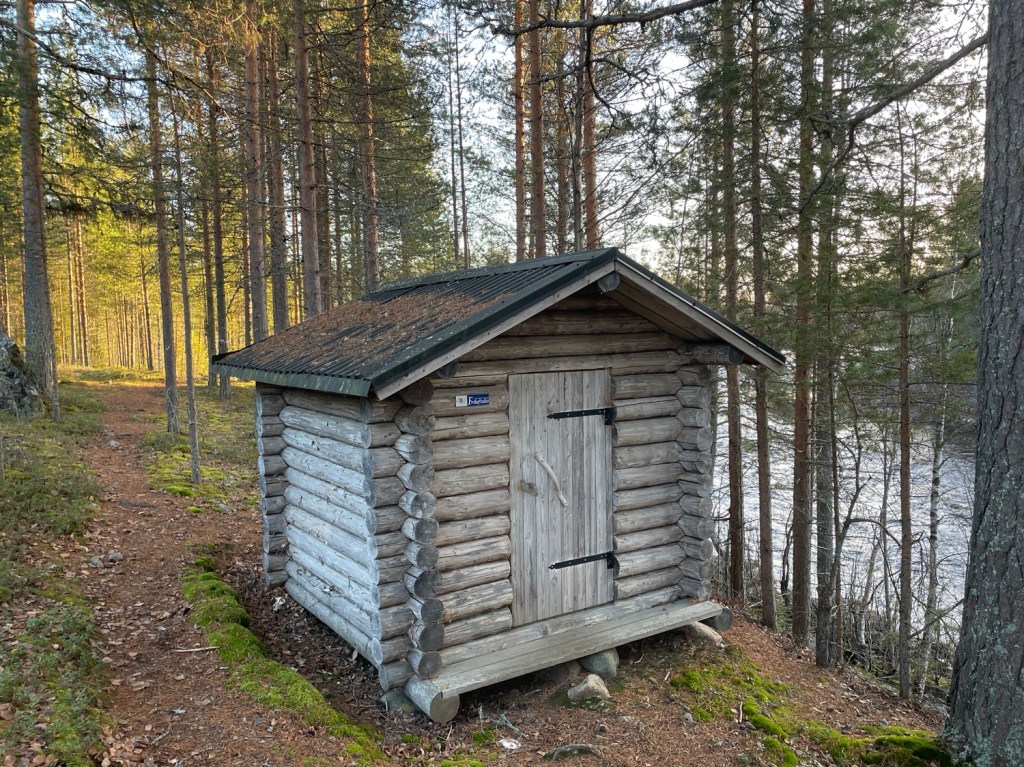 Denna helg skulle ett evenemang i Facebookgruppen Vandringsvänner gå av stapeln. Vi var tre deltagare till detta evenemang. Platsen var Långforsen strax norr om Niemisel i Luleå Kommun. Jag blev försenad då det drog över på jobbet så jag kom en halvtimme senare än planerat men de två andra var redan där. Roland körde dit redan vid lunchtid och Anne kom före mig. Dagen bjöd på soligt väder. Vi satte igång med middagsmaten som vi lagade över öppen eld. Eldplatsen var ny. Det finns en stuga för övernattning, en bastu, dass och ett tomt vedförråd. Det fanns ved vid parkeringen. Platsen ligger nära Råne älven.