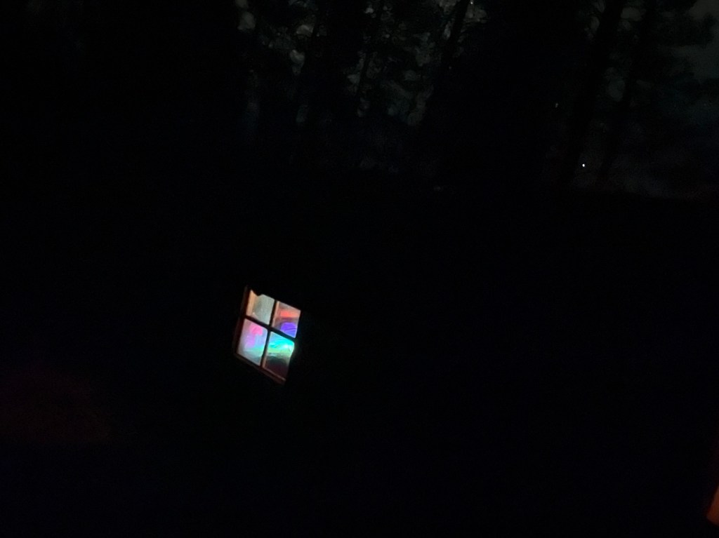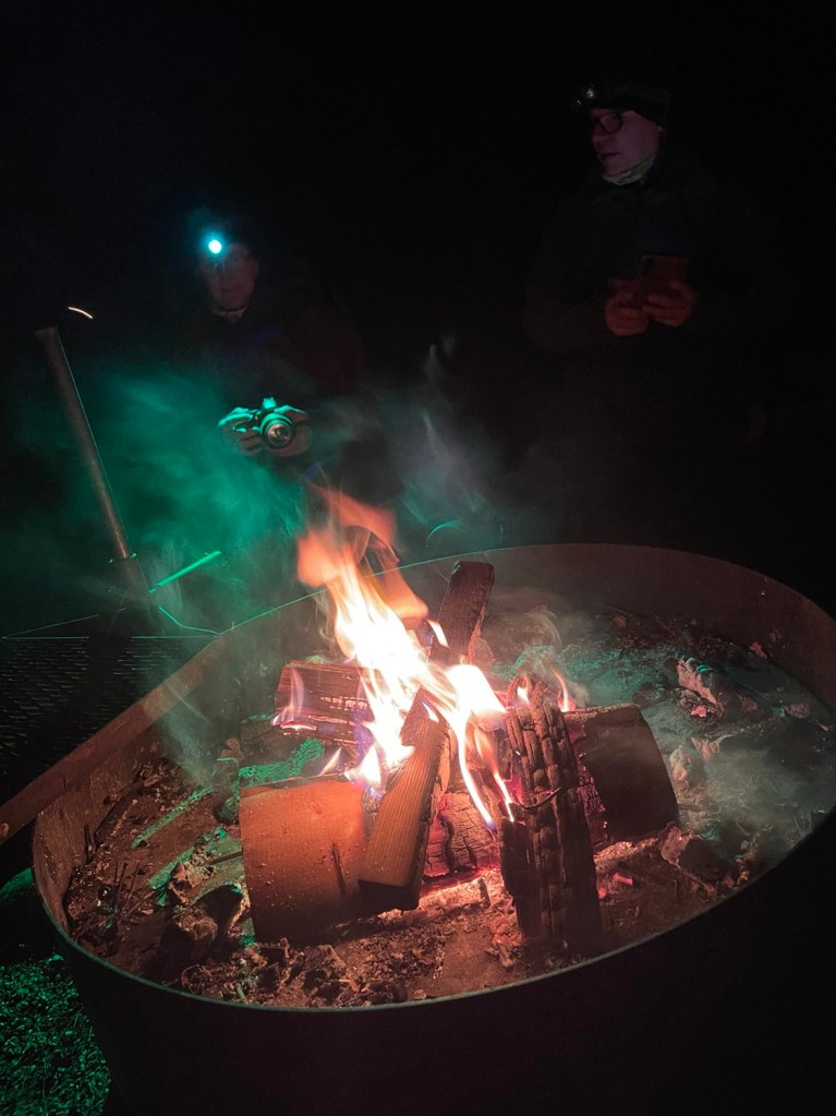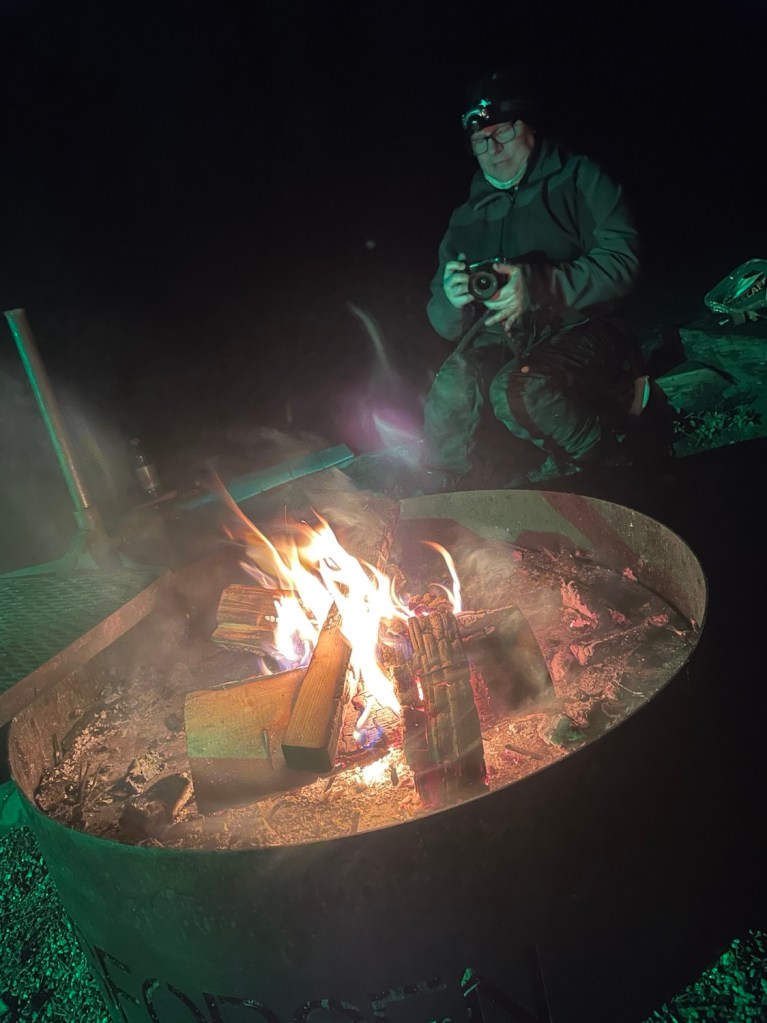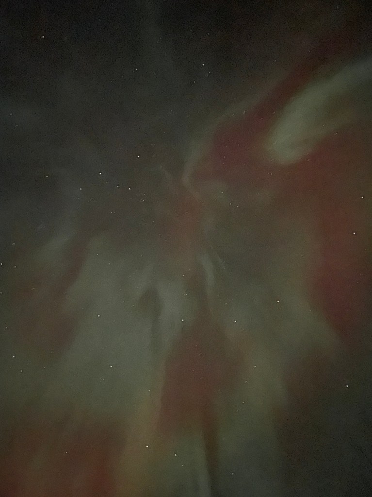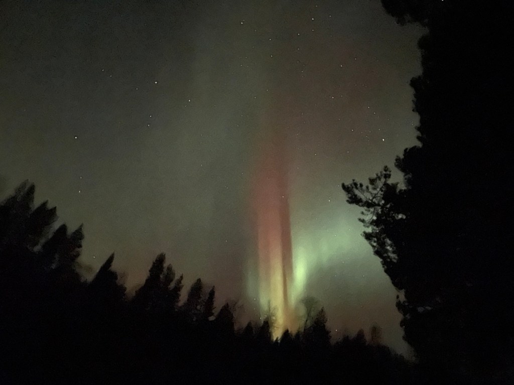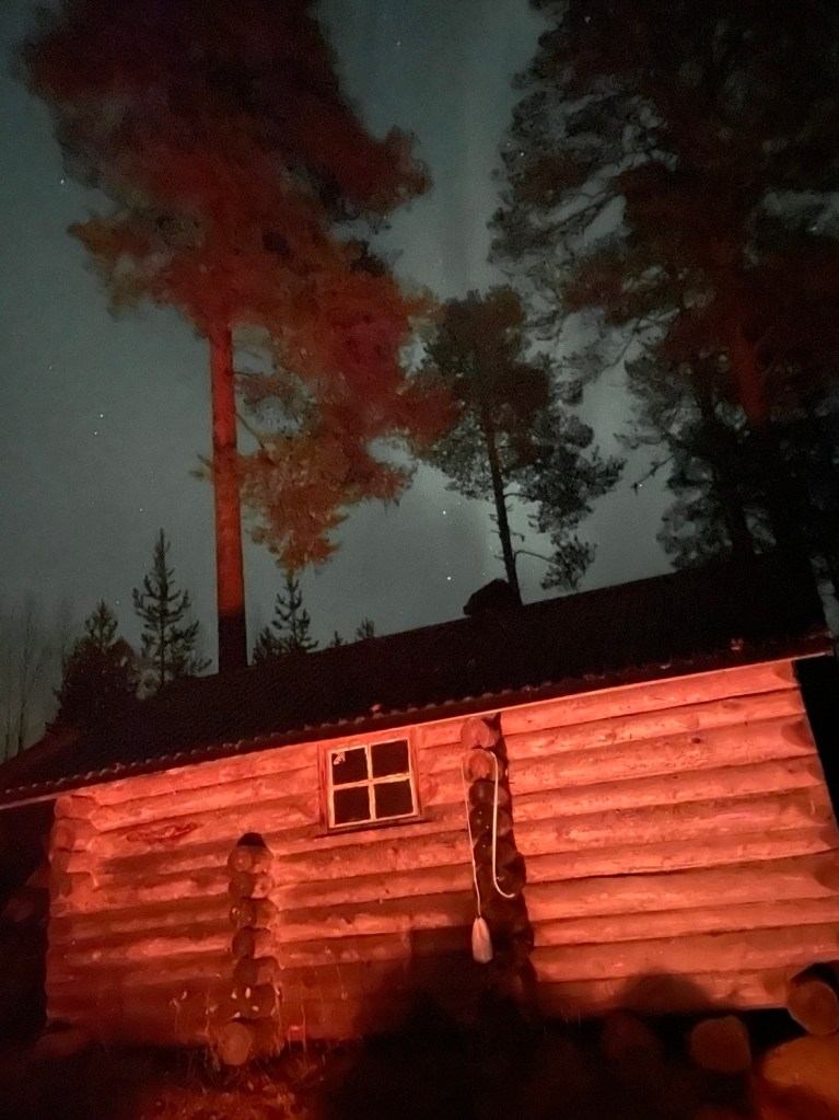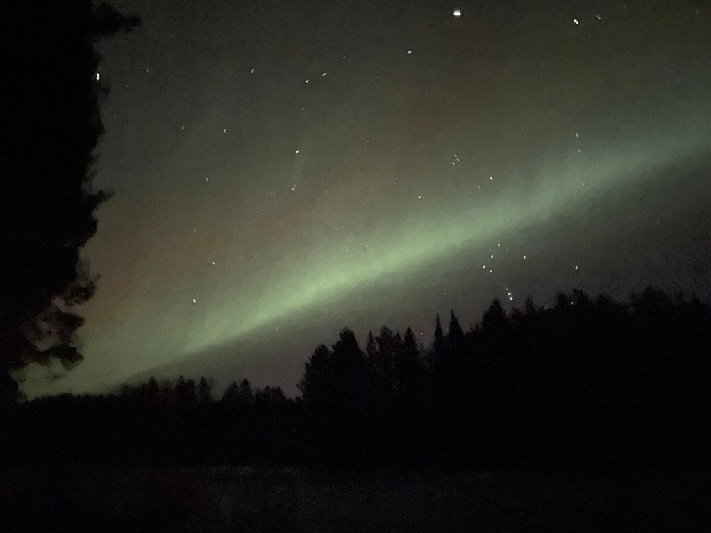 Norrskenet började dansa ovanför oss. Vi började fotografera. Både Anne och Roland hade fina systemkameror. Jag fotade med min mobiltelefon och försökte hålla handen blickstilla.