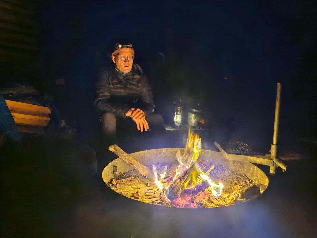 Vi fikade uppe vid vindskyddet. Det kom upp ett trevligt par från Göteborg med hund som flyttat till Luleå. De hade flyttat upp till Luleå med sina tonårsbarn för att få mer livskvalitet. De var entusiastiska över den vackra naturen och de hade hela tiden någon plats att besöka. De hade tänkt besöka Snöberget men det blev Snipen.