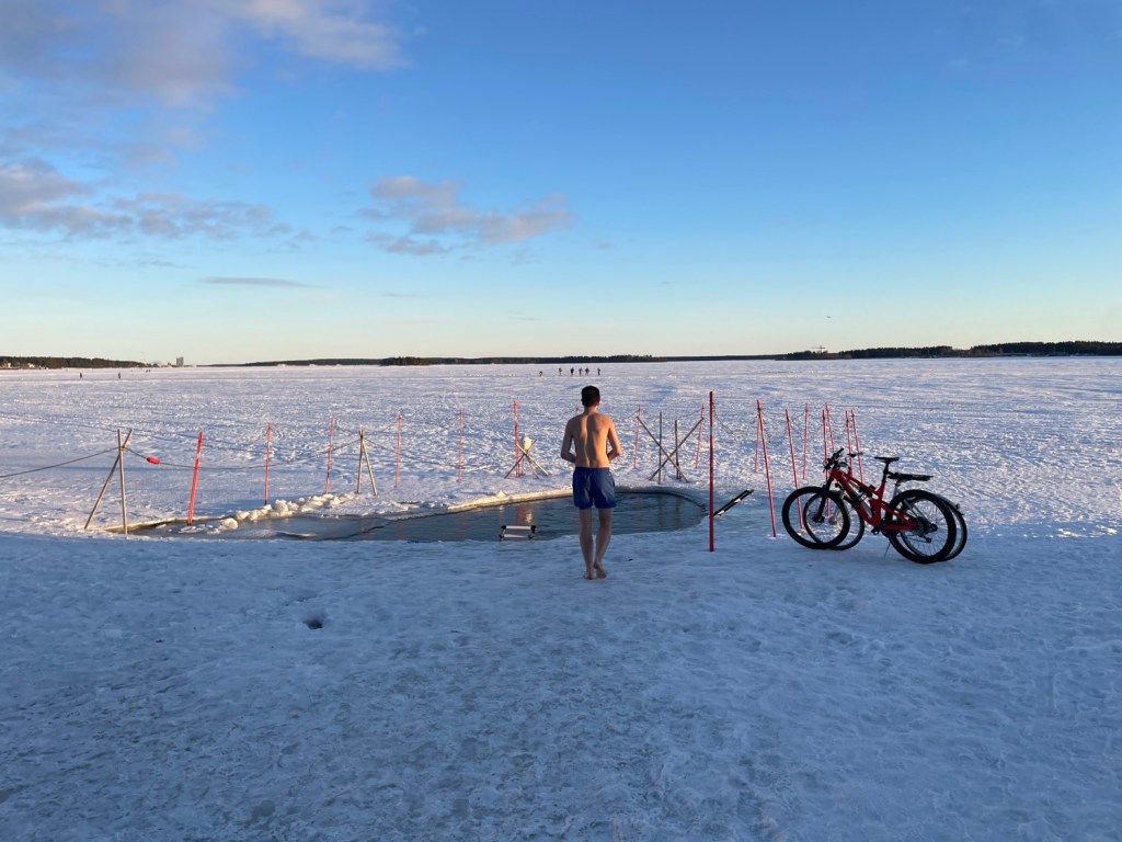 Denna vackra dag skulle det bli vinterbad och tillhörande bastubad med en polack, finne och Bellman (undertecknad). Vi hade bokat Kallis Luleås bastutunna på Varvet i Luleå.