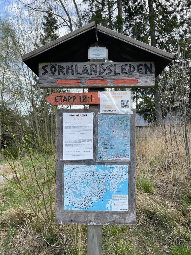 Kom till idrottsplatsen där startskylten till Sörmlandsleden finns. Inledde förväntansfullt min vandring på etapp 12:1 på Sörmlandsleden.