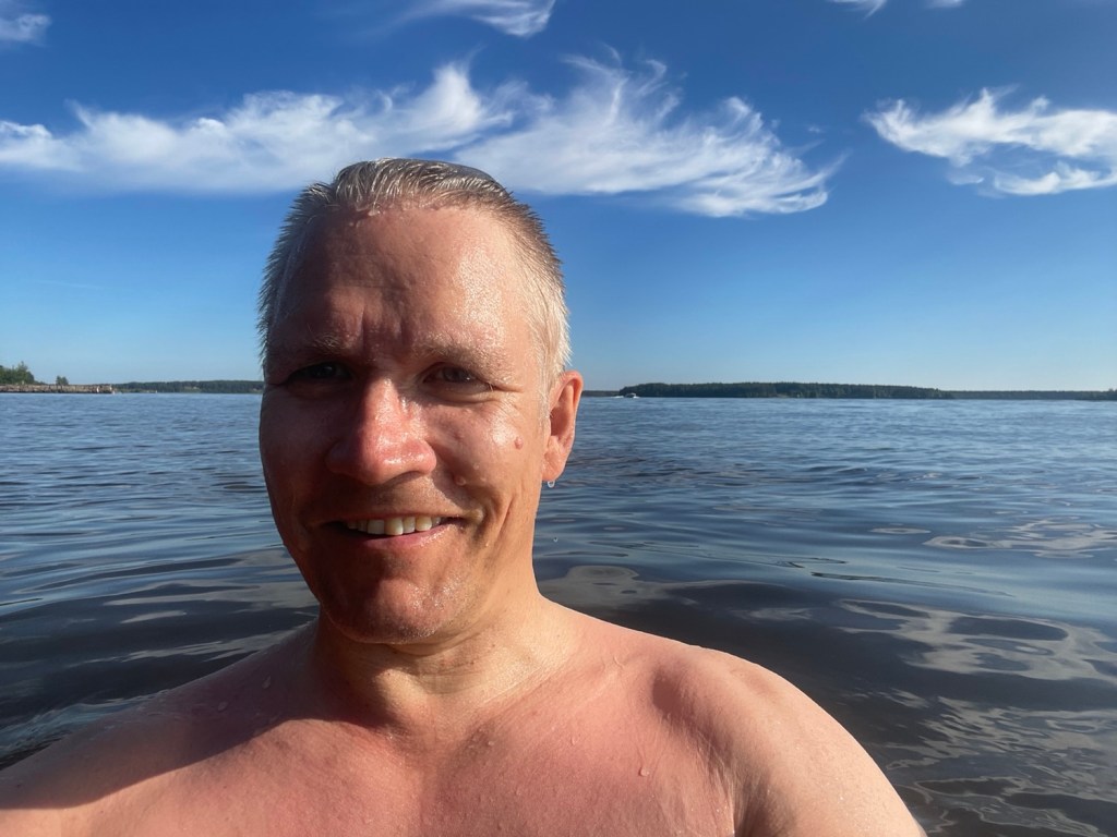 Tog mig sen ett svalkande dopp innan maten. Vattnet hade blivit varmt av de senaste dagarnas efterlängtade värmebölja.