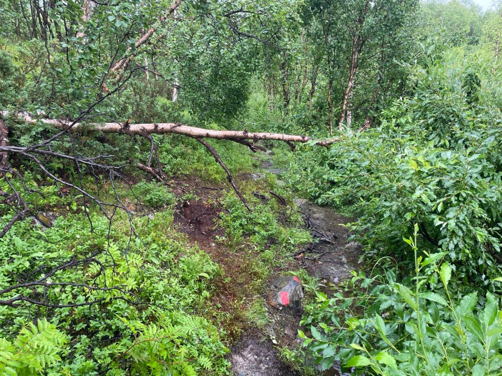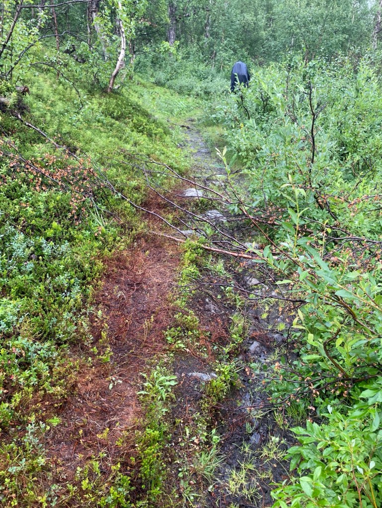 Vi kom ner till leden som vi skulle gå på till Abiskojaure. Den går från Unna Allakas.