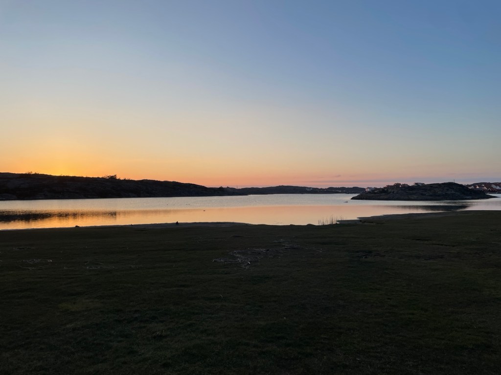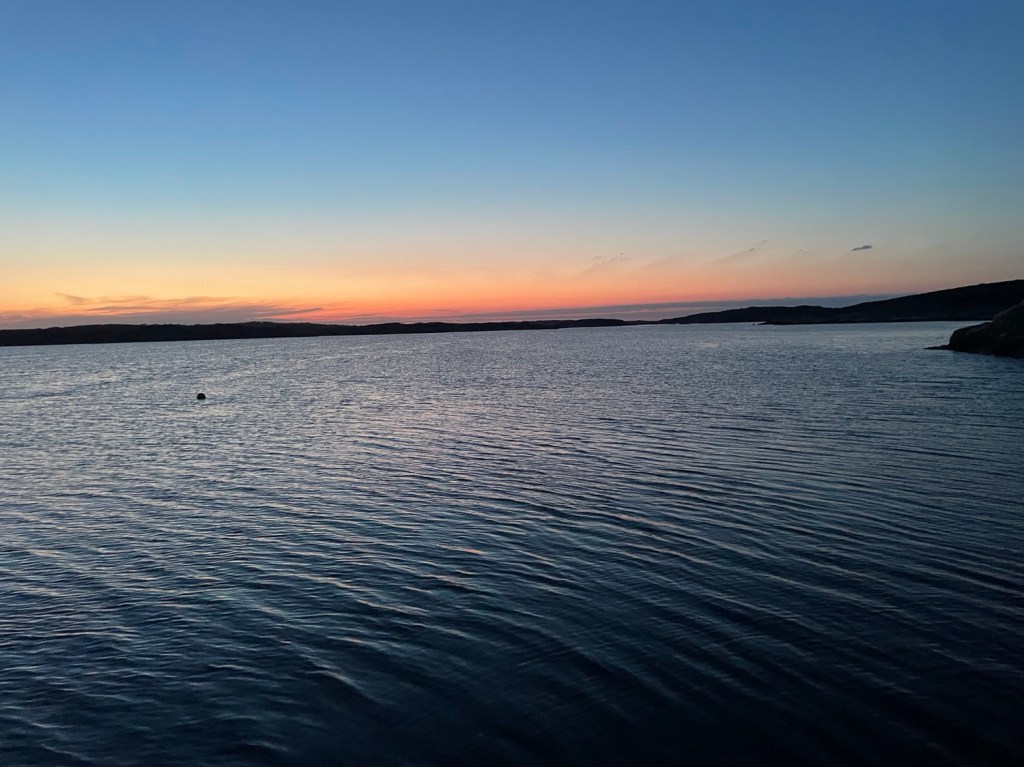 Vaknade upp till en sagolikt vacker solnedgång. Vid den här platsen hade jag startat en paddlingstur för många år sedan med en kär vän. Vi paddlade med uppblåsbara kajaker till Vallerö, Käringön och Gullholmen. Längtade efter att besöka Hermanö och nå Hermanö Huvud som vi såg från Vallerö.