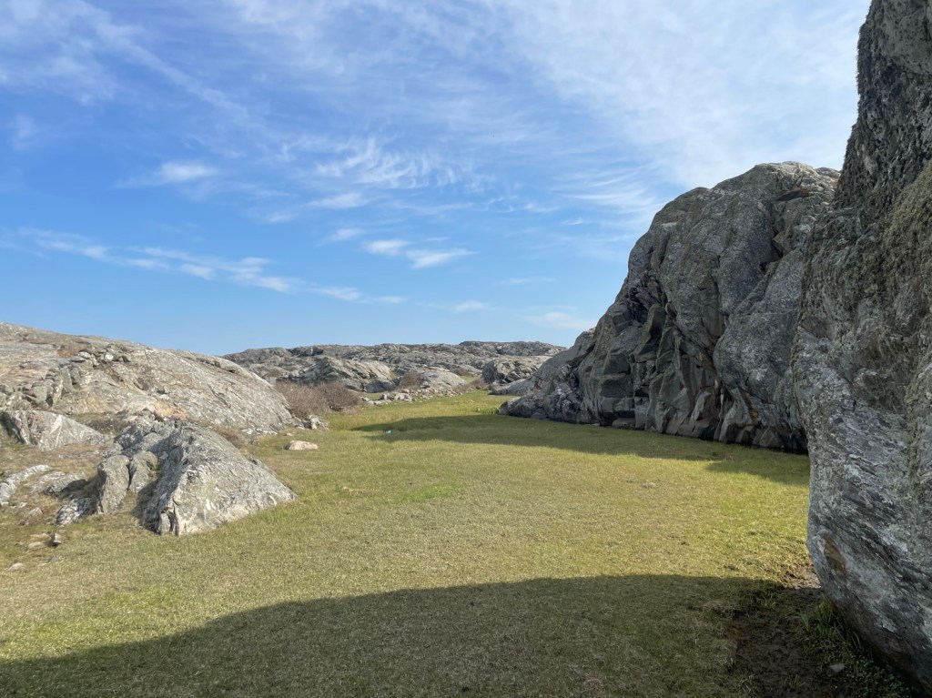 Kom sen till Klippevik. En vacker plats med ängar och klippor runt viken.