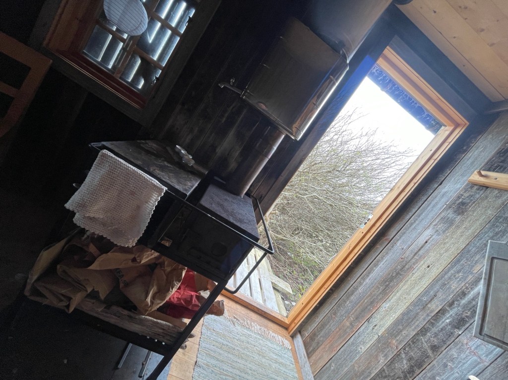 Jag tog en kortare gubblur i den svala kojan. Den hade en säng och en kamin. Det hade gått att övernatta i kojan.