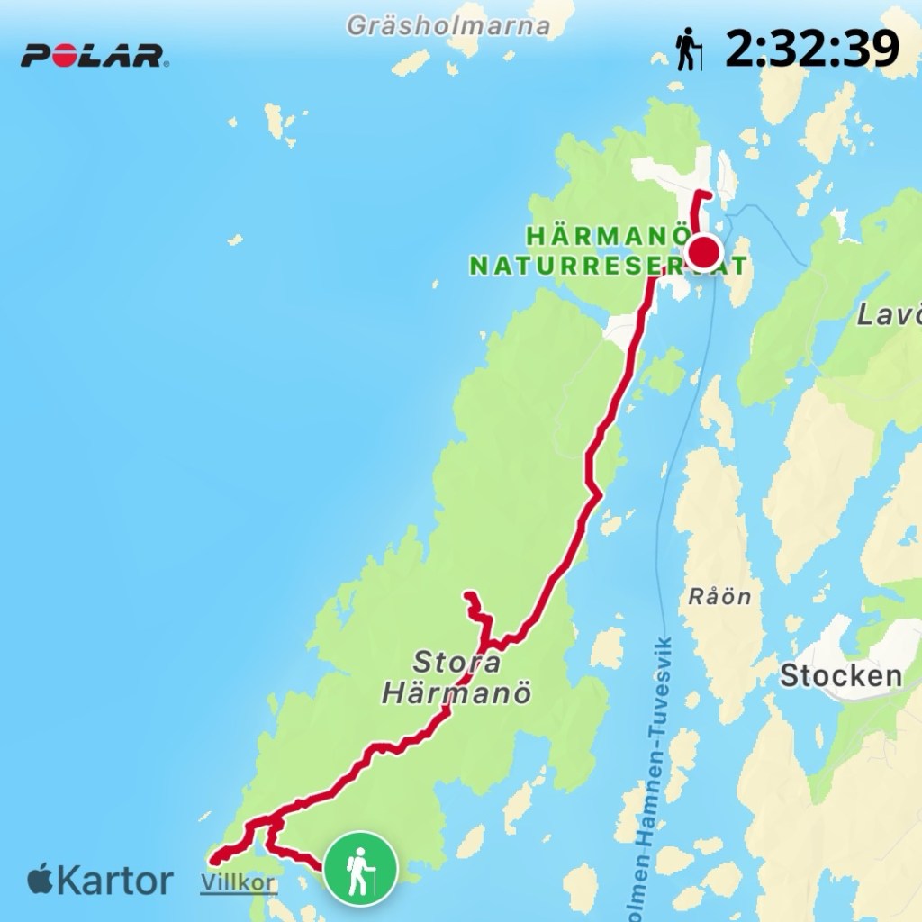 Började traska tillbaka och mobilens batteri dog så hade ingen karta. Tappade bort mig på ett ställe och gick fel så fick vända. Mötte en kvinna med hund som berättade när färjan gick och var den gick då det finns två färjeställen på Gullholmen. Jag gick till Tempo och köpte något att äta och gick till färjestället. Klev på färjan. Som tur var gick det att köpa biljett med kort av däcksmannen. Jag gick till bilen och körde mot Rönnäng och färja till Stora Dyrön. Härmanö bjöd på en riktigt fin och lång vandring med vacker natur och blommor.