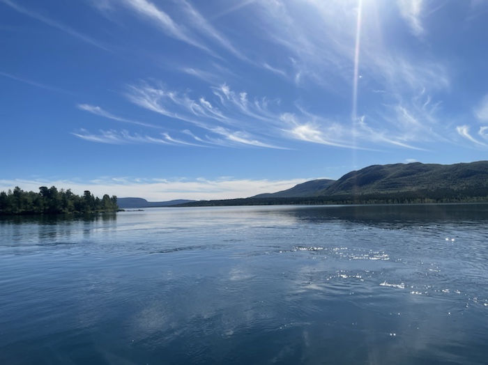 Vid Gällivare station bytte jag till buss med ett nytt bussbolag för mig, Flixbus, för färd till Kebnats. Väl framme vid Kebnats strålade solen. Klev på MS Langas till Saltoluokta på ett spegelblankt Langas.
