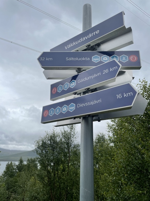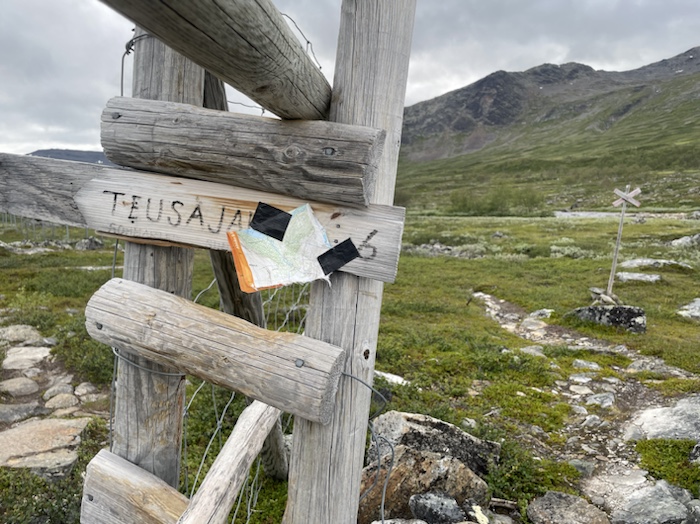 Skylt strax innan Teusajaure