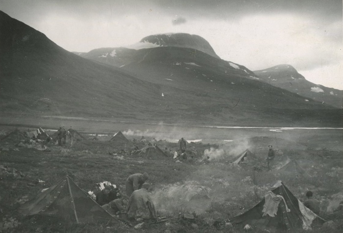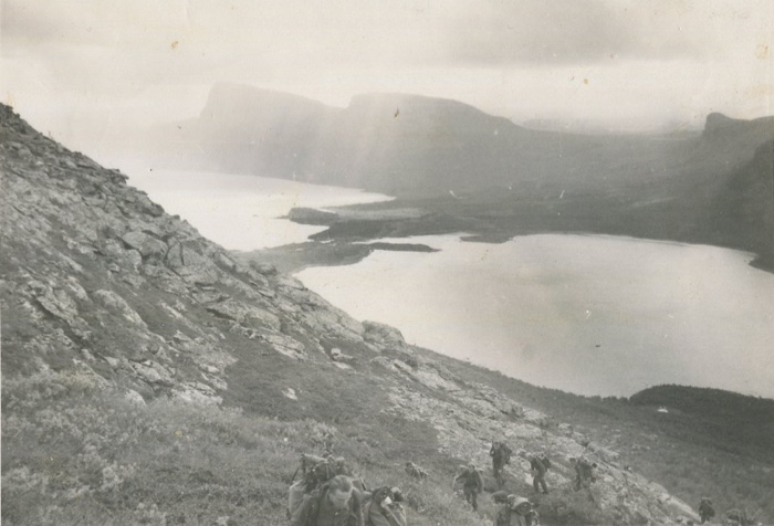 Jag hade inte morfars foto för ögat när jag vandrade uppför berget men det såg ut som att morfar och hans kompani gick uppför bergen närmare Suorva.
