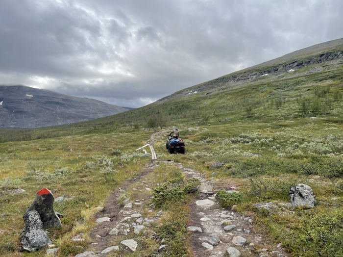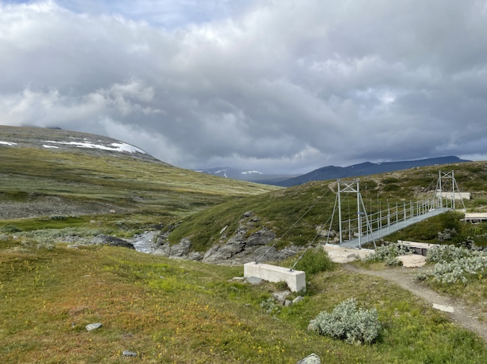 Mötte en yngre tyska som skulle gå hela Kungsleden. Hennes kompis hade avbrutit vandringen. Hon var dock bekymrad för den steniga vandringsleden.