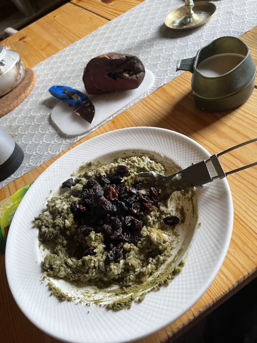Vaknade utvilad vid åttatiden och gick ut till servicebyggnaden för att laga min havregrynsgröt med hampaproteinpulver, russin och kokosmjölk på kokosmjölkpulver. Kokosmjölkpulver är svårt att blanda med vatten. Hade beställt laktosfritt mjölkpulver men det hade inte hunnit levereras. Det hade blåst upp under natten men båten till Kebnats skulle gå enligt tidtabellen.
