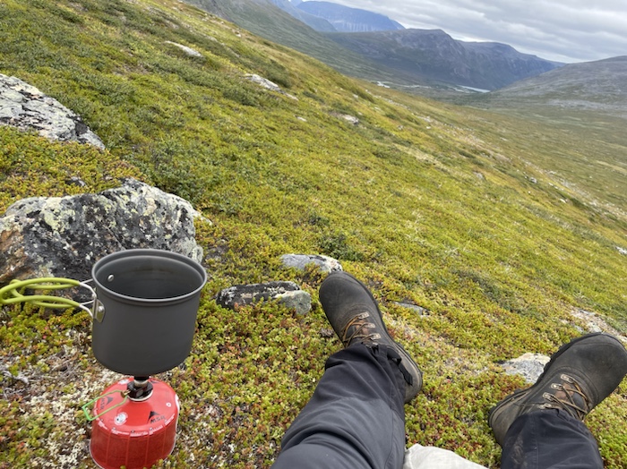 Fördelen med en tälttur är att kunna sätta upp sina bopålar var som helst och kunna njuta av makalösa utsikter inifrån tältet. Det blev en njuttur denna gången med mindre vikt på ryggen och vandring mellan fjällstugor. Fick inte skavsår och värk om fötterna. Fick inte såren runt midjan som förra året med 23,9 kg i den stora 85 liters ryggsäcken. Fördelen med att bo i fjällstugorna är alla möten som berikade min vandring. Blev fler möten med andra vandrare och stugvärdarna. Är nu ännu mer sugen att ta uppdrag som stugvärd. Har sökt uppdrag en gång men fick inte ett uppdrag denna gången. Jag fick ett långt brev hur jag ska göra för att förbättra mina chanser att få ett uppdrag. Tänk att få njuta av en längre vistelse på en och samma plats som Kaitumjaure. Absolut vackraste området var Kaitumjaure med den fina bastun, poolen och de vackra omgivningarna.