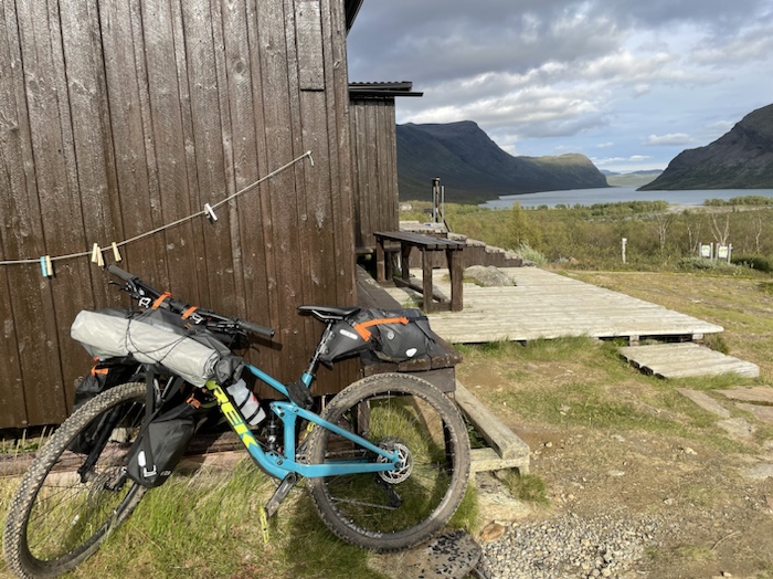 Kom till Kaitumjaure och lärde känna Frank, en holländare som bodde i Göteborg. Han cyklade från Nikkaluokta till Vakkotavare med bikepacking-konceptet. Tältet vägde endast 600 gram. På en sträcka på 14 km fick han leda cykeln 13 km pga den steniga leden.