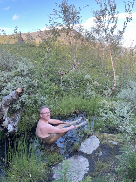 Precis nedanför den gamla bastun fanns en pool i bäcken. Den gamla bastun användes inte. Jag och Frank tog två dopp i den svalkande bäcken. Det var riktigt skönt.