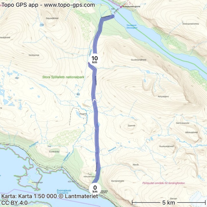 Vakkotavare-Teusajaure, 13,6 km